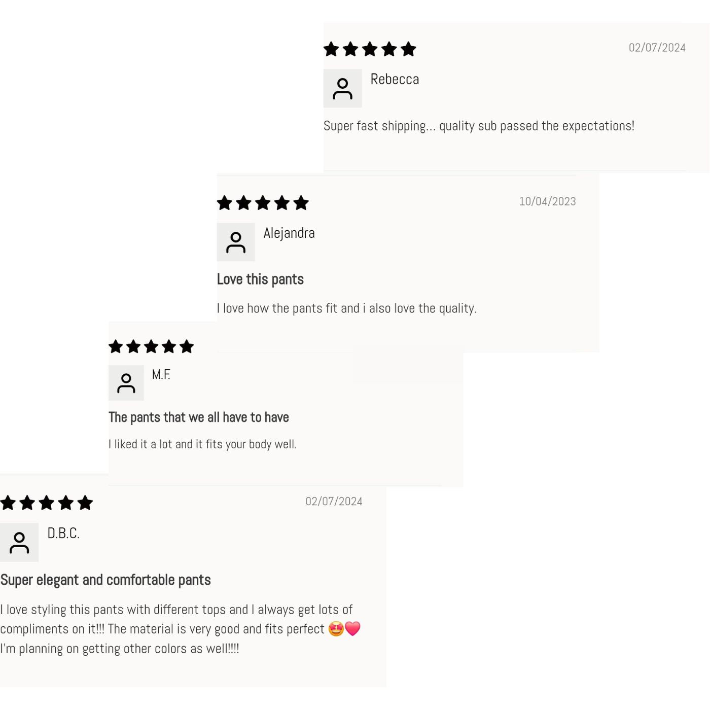 Our Zarah pants comes in a wide range of colors ready to ship immediately if you are looking for seasonal colors or via pre order for color not in stock.